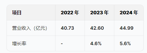 2022-2024年,双登集团营业收入分别为40.73亿元、42.60亿元、44.99亿元,年均复合增长率约5.1%。2023年较2022年增长4.6%,2024年较2023年增长5.6%。