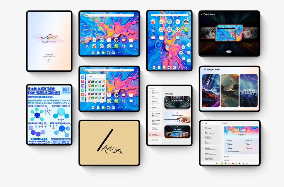 官方此前透露,Art 系列平板电脑基于安卓 15 自研了全新的 ArtOS 操作系统,继承了 Art Space 场景模式、AI Hyper Audio、自研创作 App 等多项影音娱乐创作功能。同时首发搭载 Symphony 音腔系统,音腔由 9CC 音腔扬声器组成;搭配台电自研 ArtTune 音频算法,适配了多种场景音效。