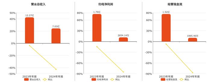 公司营业总收入为7.03亿元中国股票配资网在线登录,较去年同报告期营业总收入减少5.24亿元,同比较去年同期下降42.73%。归母净利润为2654.14万元,较去年同报告期归母净利润减少1.52亿元,同比较去年同期下降85.17%。经营活动现金净流入为1995.46万元,较去年同报告期经营活动现金净流入减少1.32亿元,同比较去年同期下降86.89%。